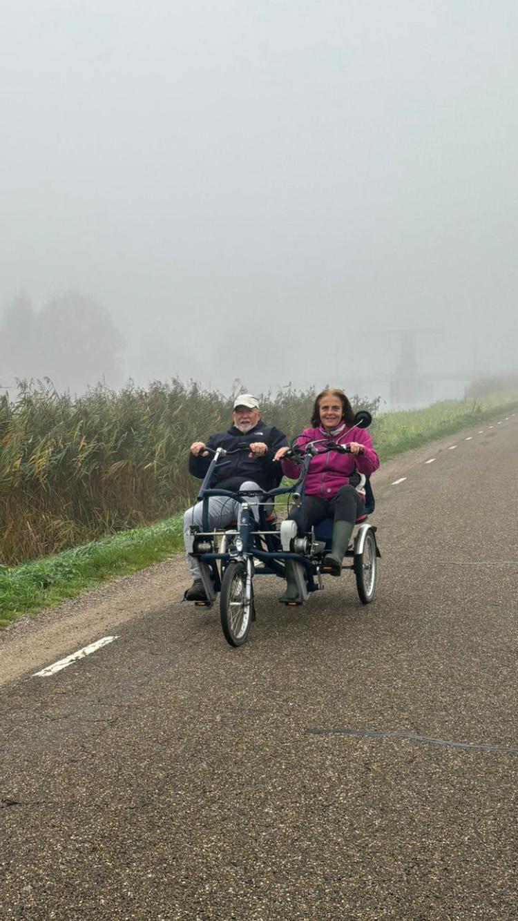 Samen op pad met de duofiets is een geliefde activiteit bij Vredesbest. Deelnemers maken onder begeleiding een rustig rondje door de polder, in de frisse buitenlucht. Het is een ontspannen moment van beweging, contact en genieten van de omgeving, op je eigen tempo, met een vertrouwd gezicht naast je.